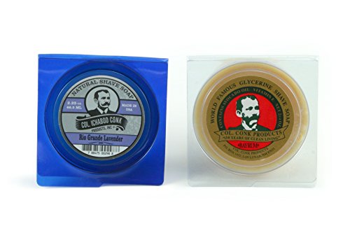 -. Binding : Health and Beauty -. Brand : Colonel Conk -. Color : cream -. EAN : 0722512598874 -. Feature : Colonel Conk Soaps / A little bit old with a little bit of NEW. / All Natural shave soap Rio Grande Lavender Soap 2.25 / Bayrum Classic most popular seller 2.25 ounce / Made In the USA -. IsAdultProduct : 0 -. Label : Colonel Conk -. Manufacturer : Colonel Conk -. Model : 123 -. MPN : 123 -. PackageQuantity : 2 -. PartNumber : 123 -. ProductGroup : Health and Beauty -. ProductTypeName : HEALTH_PERSONAL_CARE -. Publisher : Colonel Conk -. Studio : Colonel Conk -. Title : Colonel Conk Bayrum + All Natural Rio Grande Lavender Soap 2.25 each (2 Pack) -. UPC : 722512598874