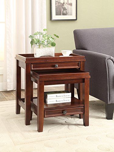 -. Brand : FurnitureMaxx -. Color : Brown -. EAN : 0612524912792 -. Feature : Sleek, straight lined design with cherry finish / Versatile look allows the piece to complement any decor. / Two piece set; Single storage drawer in each table / Table Dimension: Large - 24X16.5X24, Small - 19.5X15X19; Shelf Dimensions: Large - 24" x 16.5", Small - 19.5" x 15" / Photo May Slightly Different From Actual Item in Terms of Color Due to the Lighting During Photo Shooting or the Monitor's Display. -. Label : FurnitureMaxx -. Manufacturer : FurnitureMaxx -. MPN : LIN-770001CHY01U -. PartNumber : LIN-770001CHY01U -. ProductGroup : Furniture -. ProductTypeName : HOME_FURNITURE_AND_DECOR -. Publisher : FurnitureMaxx -. Studio : FurnitureMaxx -. Title : Weldon 2pc Nesting Tables, Cherry -. UPC : 612524912792