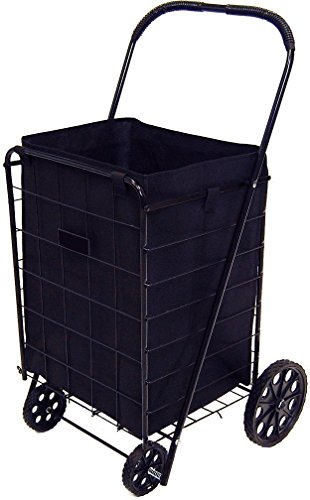 Liner attaches easily to all standard jumbo size shopping carts and is removable. Has square bottom and top cover.