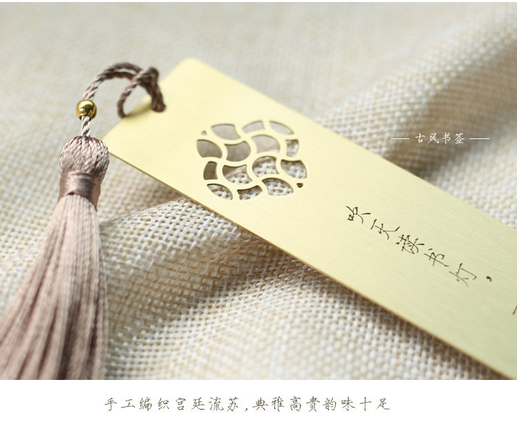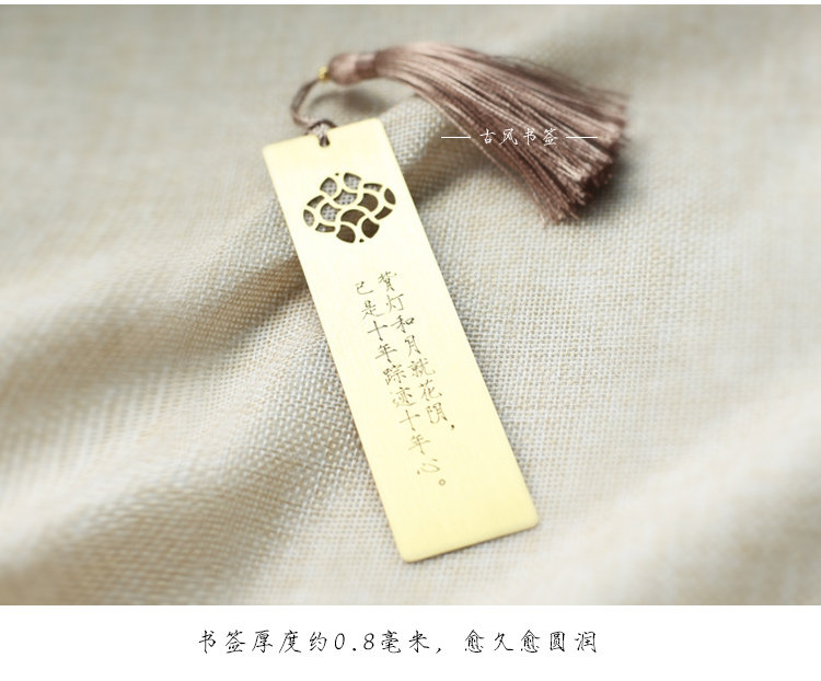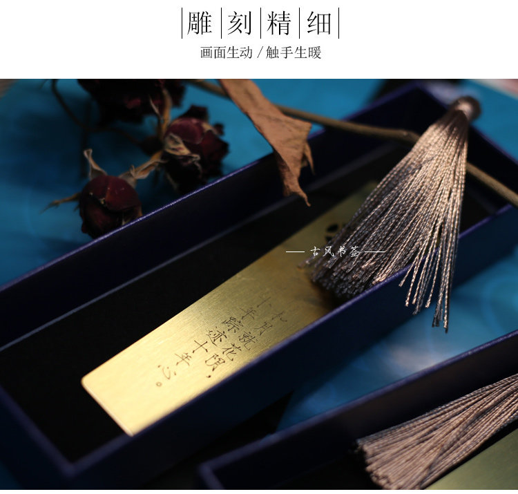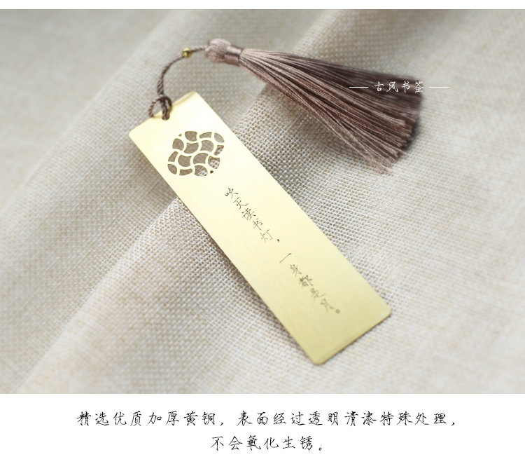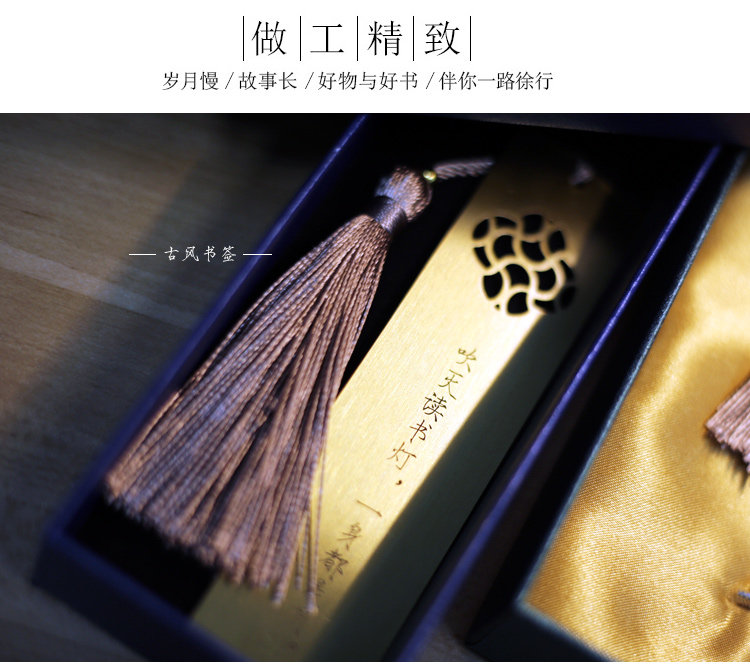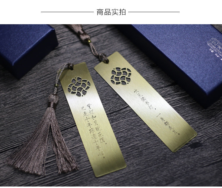 This is a Chinese style metal bookmarkUse refined brass as the main materialMetal surface after drawing treatmentAfter a special treatment of transparent varnishWith exquisite gift box packaging
