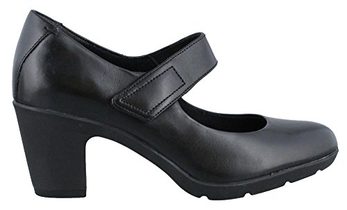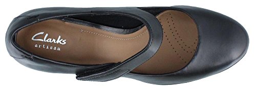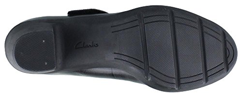 Women's Clarks, Lucette Lady Mid Heel Pump This mary jane inspired silhouette is a must have! Leather upper Adjustable hook and loop mary jane style strap for an easy on and off Fabric lining Leather topped cushioned footbed for added comfort Chunky 2 3/4 inch heel Rubber outsole. Heel Height of 2.75 inchesFeature