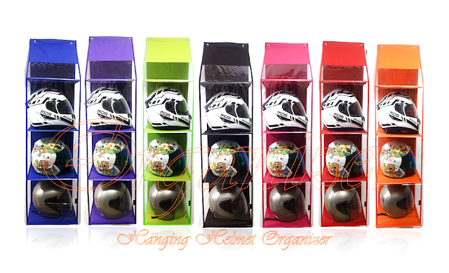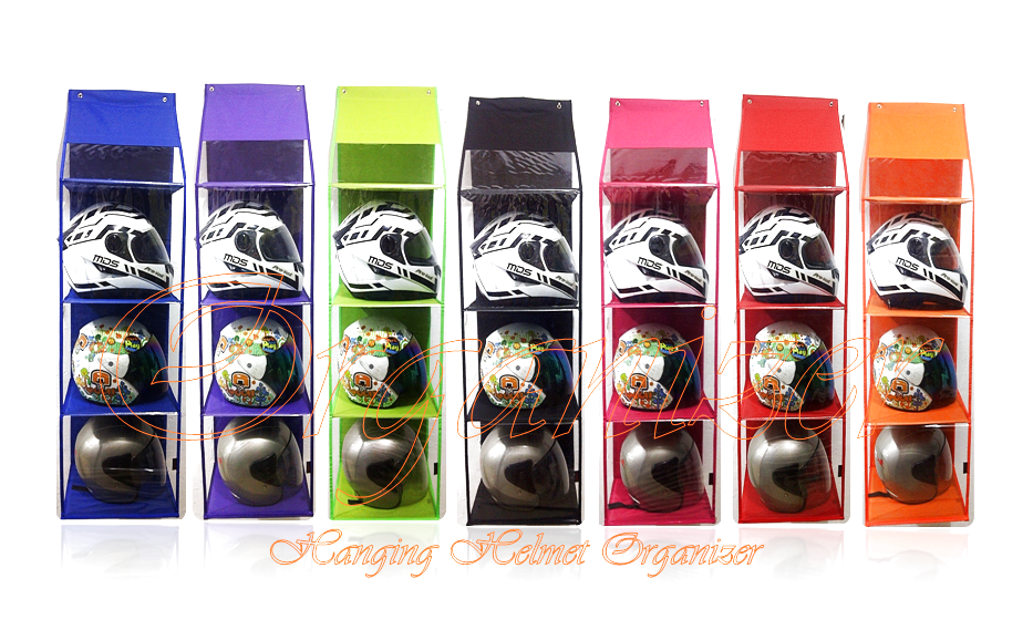 suka bingung kan untuk menyimpan barang-barang agar terlihat rapi, apalagi jika ruangannya tidak terlalu besar, pasti bakal terlihat berantakan Hanging helmet Organizer adalah rak gantung serbaguna yang bisa kamu gunakan untuk menyimpan koleksi helm, mainan anak, boneka, majalah ataupun pernak-pernik lainnya. Produk ini terbuat dari bahan Baby Ripstock yang berkualitas premium sehingga tidak mudah rusak. Barang-barang yang kamu simpan di dalam Hanging Helmet Organizer tidak akan berdebu atau terkena air karena sudah dilapisi dengan mika plastik transparan yang tidak mudah sobek. Jika kamu membutuhkan rak helm yang serbaguna, maka produk ini bisa menjadi pilihan yang sangat cocok untuk kamu miliki. Bisa digunakan untuk menyimpan 3 helm dan 1 kantong tambahan untuk menaruh masker dan sarung tangan. Organizer ini juga dapat dilipat ketika sedang tidak digunakan.