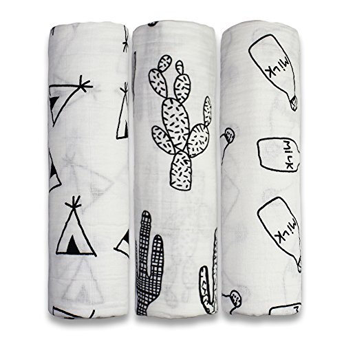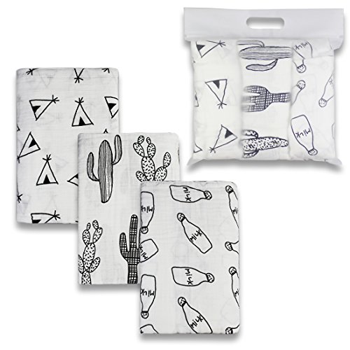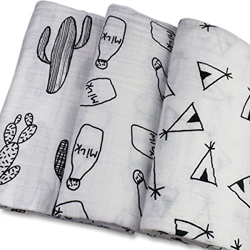 Exquisite Design: Exquisite designed prints combo – Milk Bottle/Tents/Cacti enables this swaddle blankets set can be used for both boys and girls; makes your baby be fashionable.