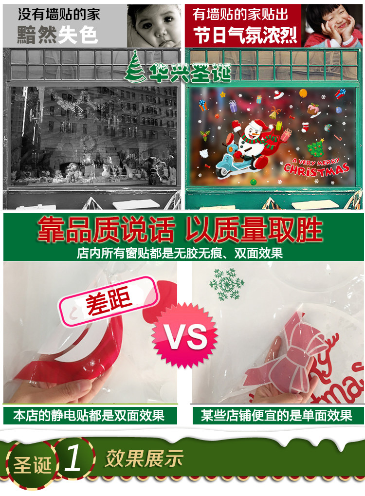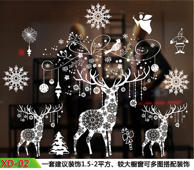 圣诞节装饰品圣诞老人雪人雪花彩色静电贴橱窗玻璃门圣诞贴画贴纸