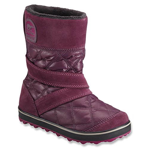 Looking like an arctic sleeping bag, and every bit as cozy, the SOREL GlacyTM Slip On winter boot is the foot's ideal refuge from cold and wet conditions. The waterproof suede and nylon fabric upper is backed up by a waterproof membrane to keep this women's snow boot dry inside, while the durable rubber sole is studded with grippy "bumps" for traction on slippery surfaces.Feature