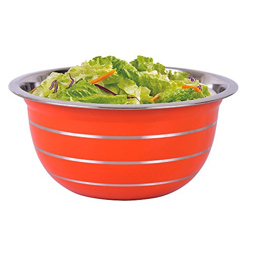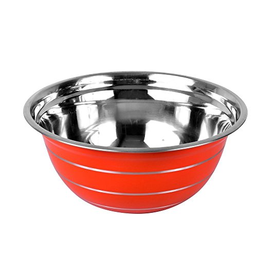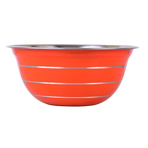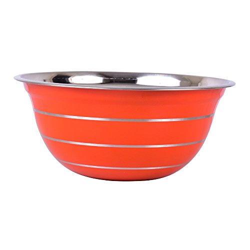 Kosma Stainless Steel Deep Mixing Bowl | Salad Bowl in a brilliant Orange Colour exterior & Mirror Finish Interior - 26 cm (5 Litres)