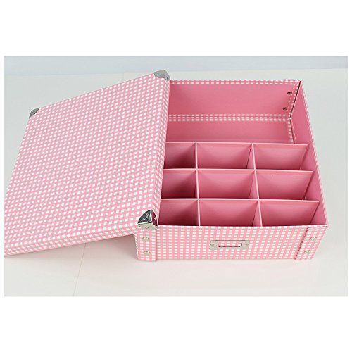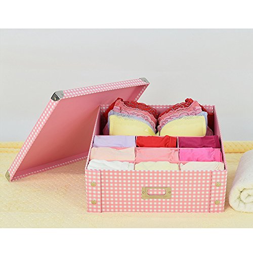 -. Title : 13.8x13x4.7" inches Paper Product Closet Organizer Box Collapsible Storage Boxes Drawer Divider for Clothing, Bra, Underwear, Blankets, Towels, Bibs (Pink&white,9+1grid)