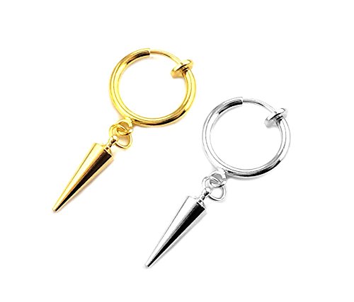 -. Feature : ピアス穴がなくてもOK! フェイクピアス / バネタイプなので挟むだけで簡単に装着可能! / 直径13mm チャーム:1.5cmx0.5cm / シルバー1個 ゴールド 1個 / 収納袋が付属しています