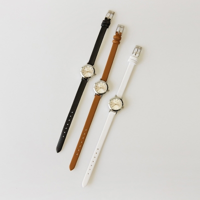 얇은 시계줄로 다양한 룩에 매치하기 좋을아이템입니다. 화이트,브라운,블랙 기본 컬러감으로 준비해드렸으며 실용성은 물론 은근한 포인트 악세서리로도 활용해보기 좋을 아이템입니다.