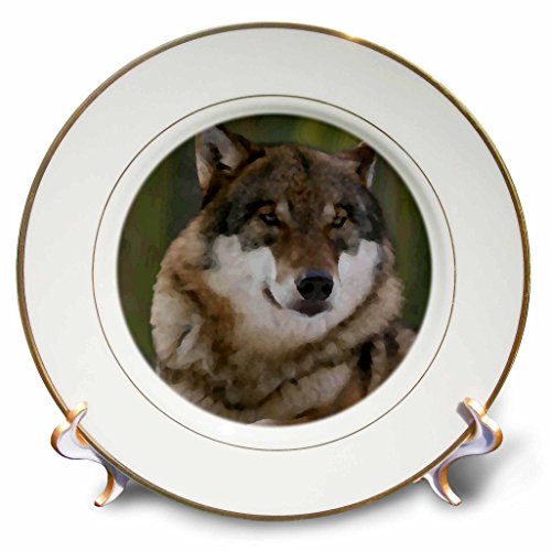 3D Rose Wild Wolf Porcelain Plate, 8"