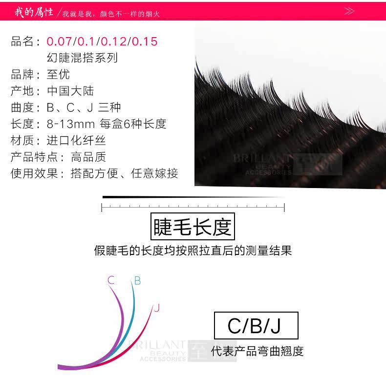 本品共分B、C、J三个曲度, 每个曲度分0.07/0.10/0.12/0.15四种粗度 每盒都有8-13六种长度 亲在下单的时候一定要备注留言所需要的曲度和粗度, 或者付款后联系客服MM,否则随机发货哦!~
