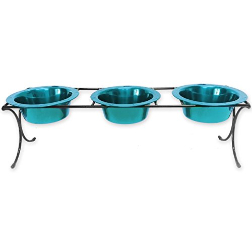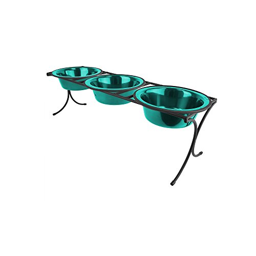 Studio : Platinum Pets, Inc Publisher : Platinum Pets, Inc Binding : Misc. Product Description This in vogue, versatile design of the Bistro Triple Raised Feeder is sure to impress any room. This sturdy feeder is made of thick hand welded steel, making it suitable for inside or outdoor use. The smooth curve design is the perfect compliment to any decor. The three stainless steel Extra Wide Rimmed Bowls are powder coated in 18 contemporary colors. Its perfect combination of quality craftsmanship and simple, sophisticated colorful designs will instantly enhance your pet's eating space. Designed and created for your pet's colorful design. Platinum Pets offers a lifetime guarantee against rust with proof of purchase. 0