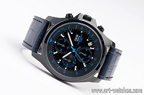 -. Title : 【JMW】ブラック&ブルー上級クロノグラフ100m防水タキメーター腕時計メンズ【世界限定300本】