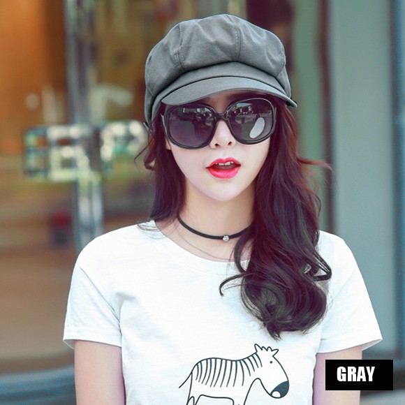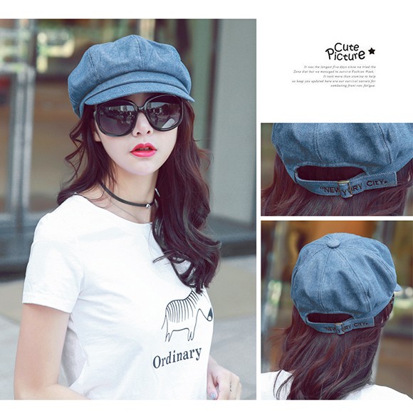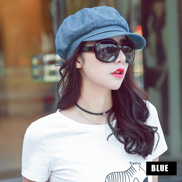 デニム風の素材と丸っこいフォルムが可愛いキャスケット♪