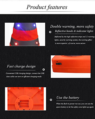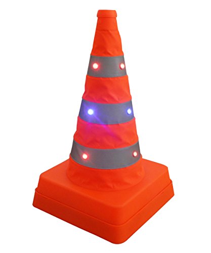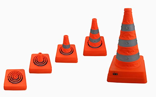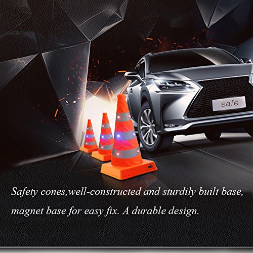 Safety Cones, Portable Traffic Cones with Nighttime LED Lights Multipurpose Reflective Collapsible Easy Storage, 18 Inch