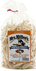 -. Feature : These garlic-parsley noodles make a wonderful and easy side dish. / Kosher and Cholesterol-free Pasta / Since 1973 Mrs. Miller's Pasta have been producing the finest egg noodles available in a variety of sizes and flavors. / Quality comes naturally when using the traditional homemade process handed down from Mrs. Miller's Amish heritage.
