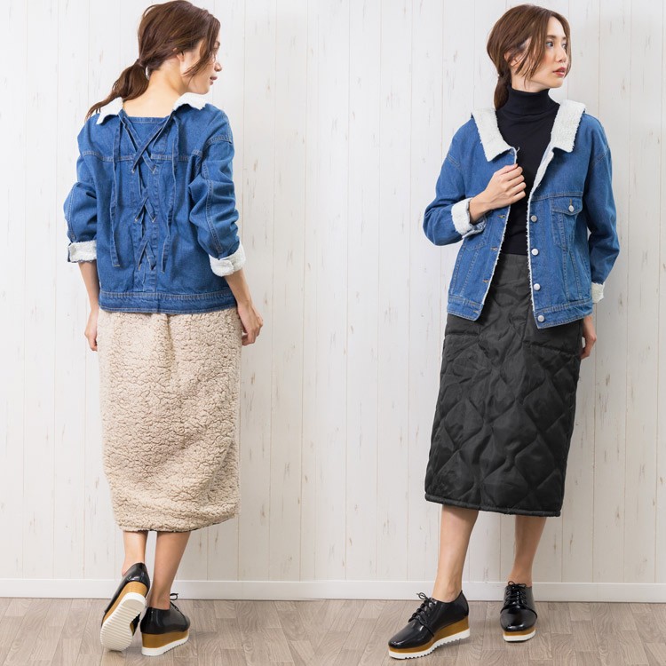 商品名:WAVEキルトxボアリバーシブルタイトスカート