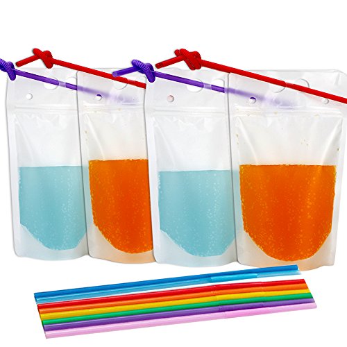 Tomnk 200PCS Clear Drink Pouches Bags Juice Sealed Bag Heavy Duty Hand-held Translucent Reclosable Zipper Stand-up Plastic Pouches Bags Drinking Bags 2.4" Bottom Gusset