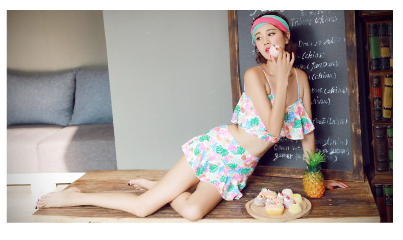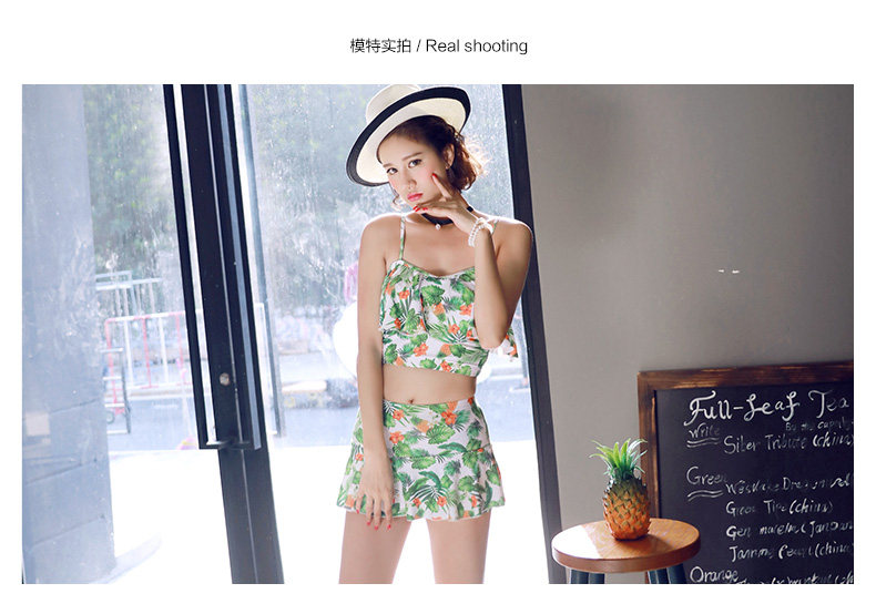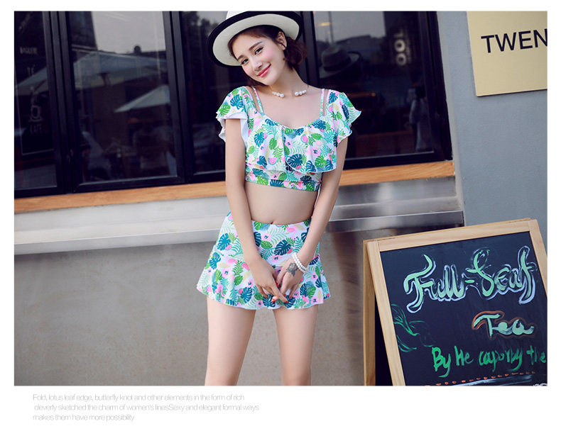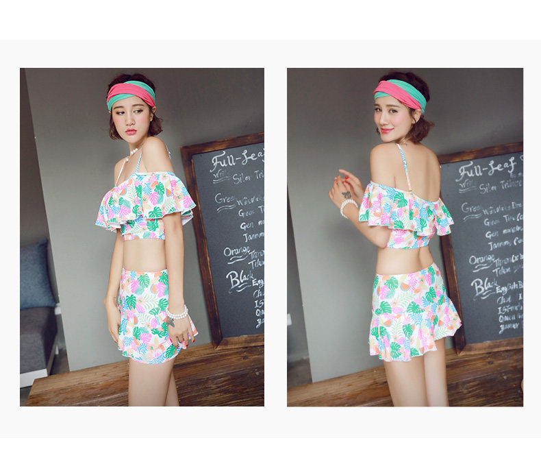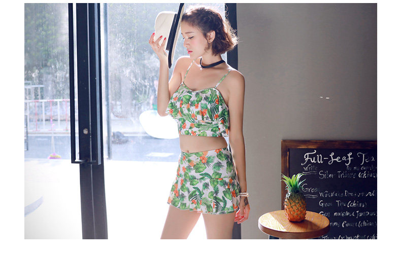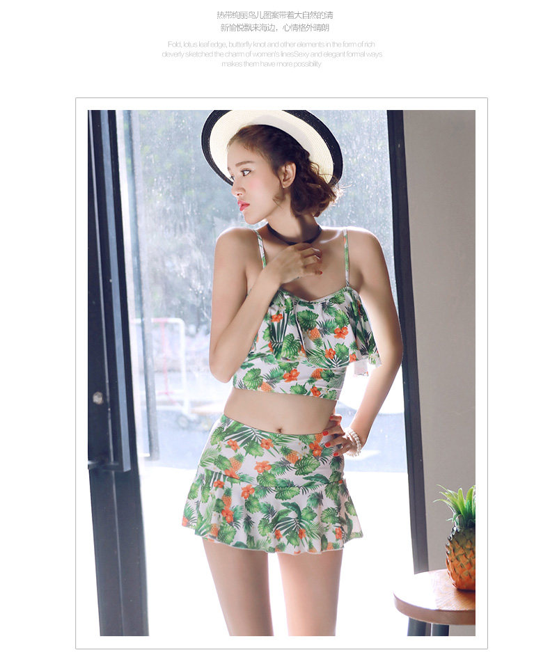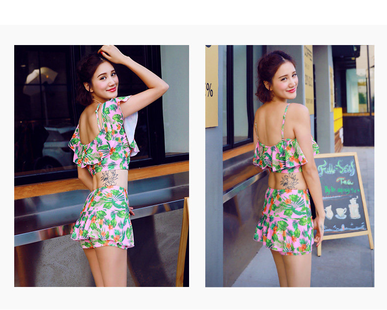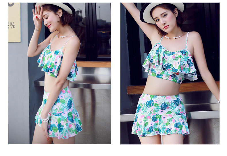 温泉泳衣女分体比基尼裙式游泳衣钢托聚拢小胸显瘦花色泳装