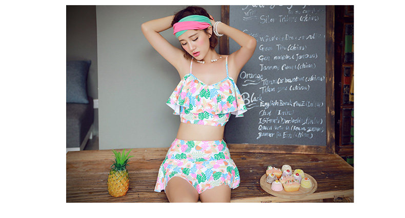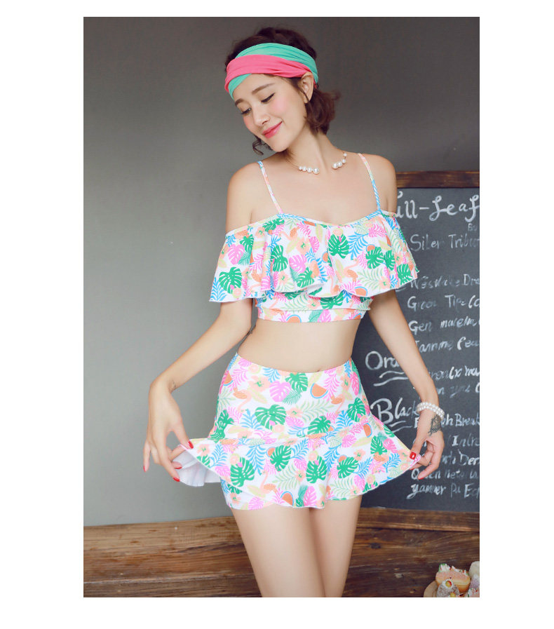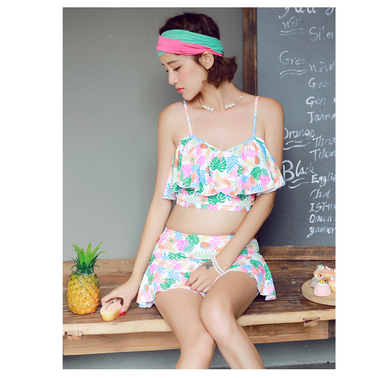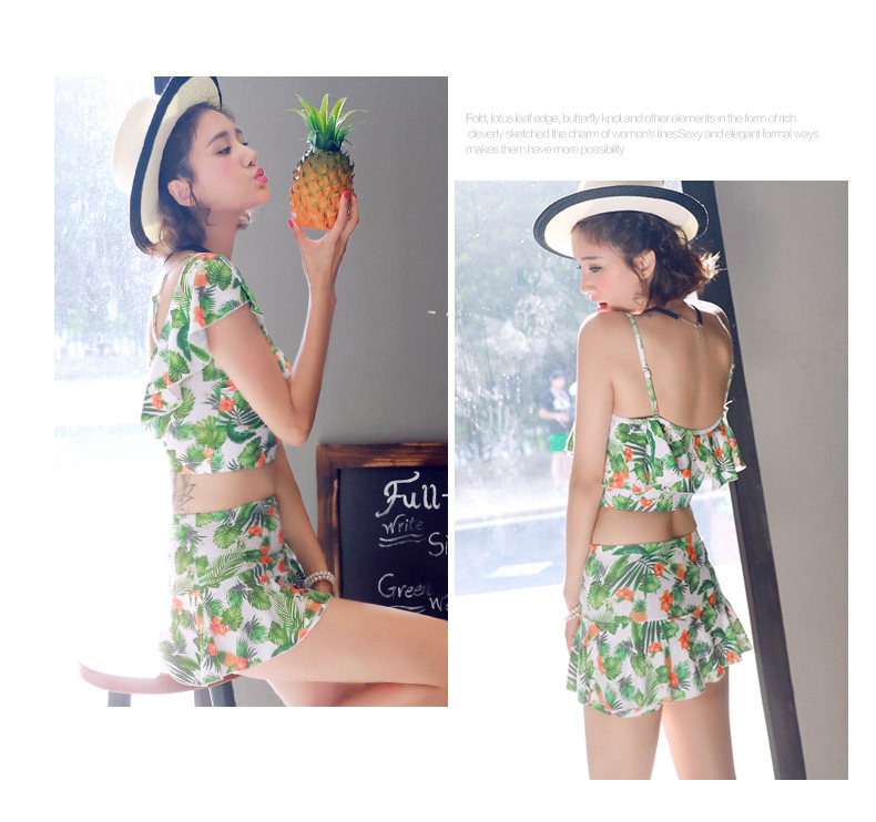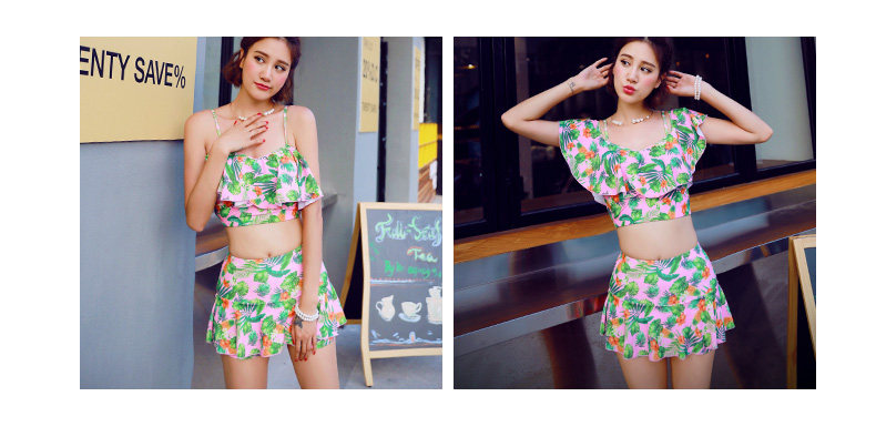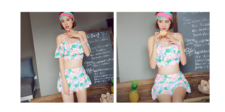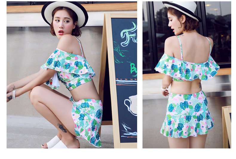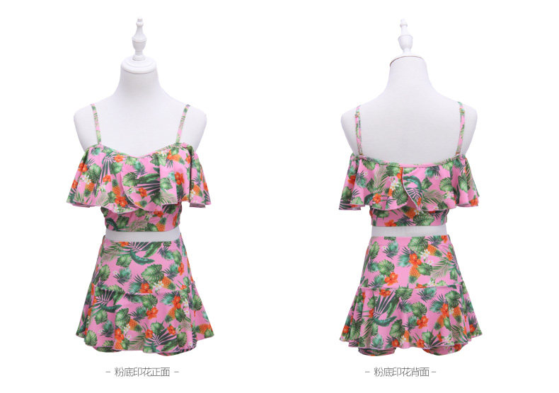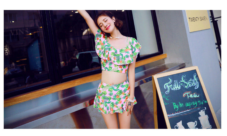 温泉泳衣女分体比基尼裙式游泳衣钢托聚拢小胸显瘦花色泳装