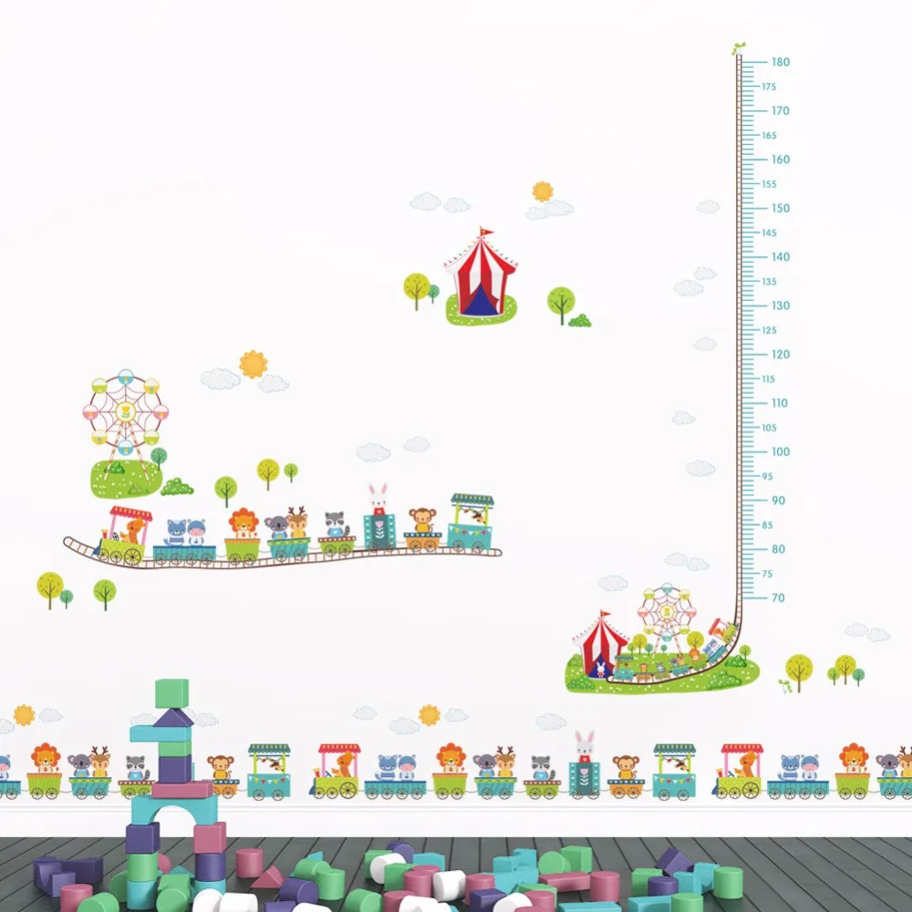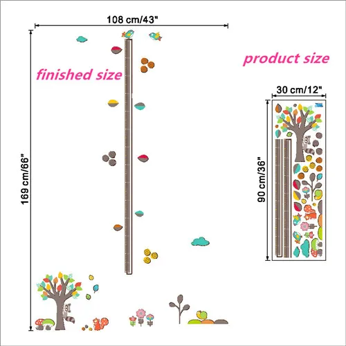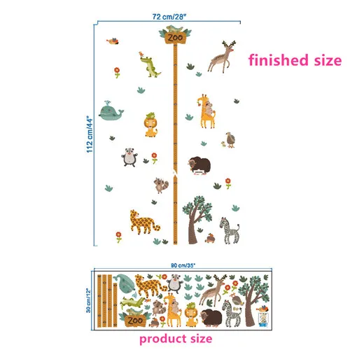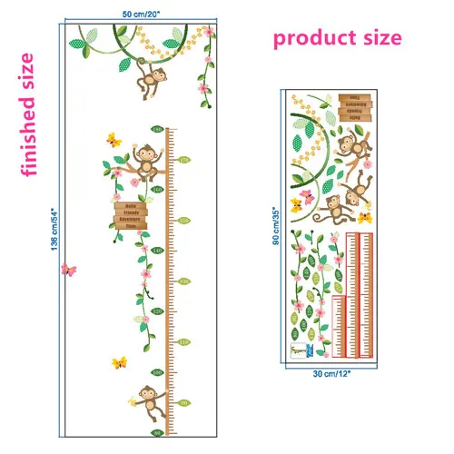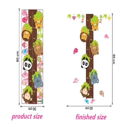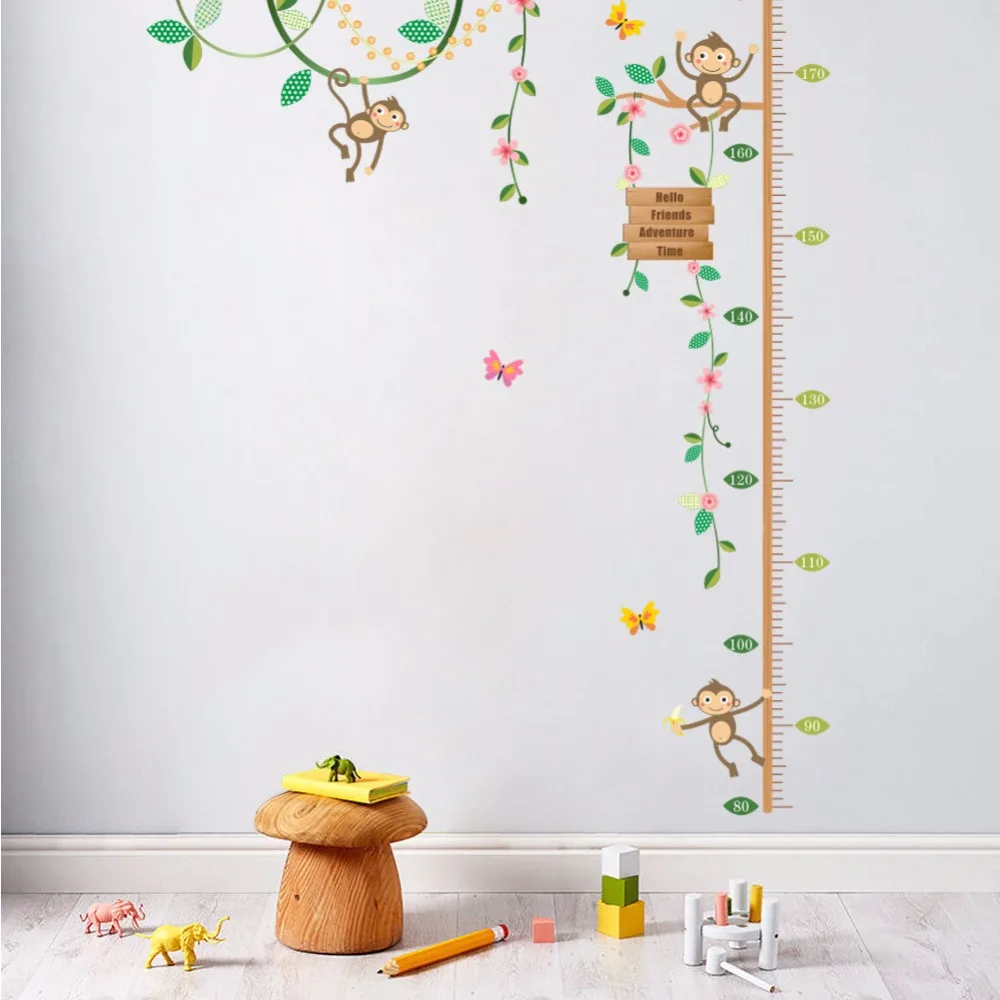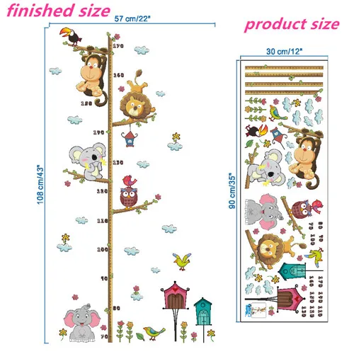 content: Jungle Animals Lion Monkey Owl Height Measure Wall Sticker