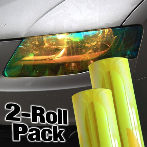 Chameleon Gold Yellow Gloss Vinyl Headlight Foglight Tint Wrap Adhesive 12" x 24" 2-roll pack