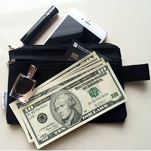 Augbunny 100% Cotton 16oz Canvas Zipper Makeup Pouch, Coin Purse, Cellphone Purse, Pen / Pencil Case 5-pack
