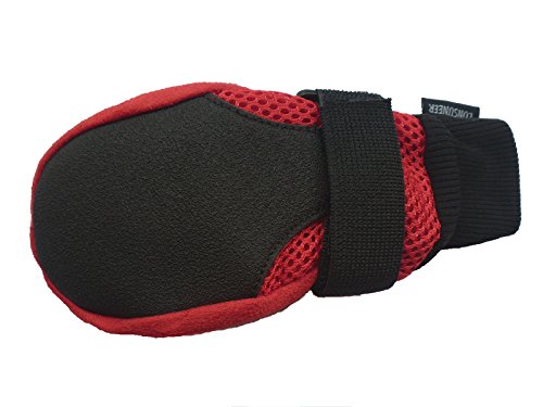 -. Feature : Upper is made of double-layer breathable mesh fabric, firmly hemmed by soft durable cloth around, with flexible cuffs at the top, capable to keep debris out, and make paws comfortable, cool and dry. / Nonslip, water-proof, and flexible faux-leather soles, well provide traction and protect paws in daily environment. Practical for dogs in daily simple wear during spring, summer and fall. / Very easy and quick to put on, but difficult to slip off. Closure control by a wide and adjustable Velcro strap, firmly fastens around ankle. / Essentially this set of LONSUNEER boots is the same as the boots with prior title Lifeful Summer Dog Simple Soft Sole Nonslip Mesh Boots, Breathable, Flexible and Cool, For Dog Daily Walks or Stroll, Set of 4, Red Color. Their only difference is on the hang-tag and woven labels (The prior boots are with prior hang-tag, and they don¡¯t have woven labels). / Size Medium: Inner Sole Length 2.56", Inner Sole Width 2.56". Size Large: Inner Sole Length 3.15", Inner Sole Width 2.83". Size X-Large: Inner Sole Length 3.74", Inner Sole Width 3.15".