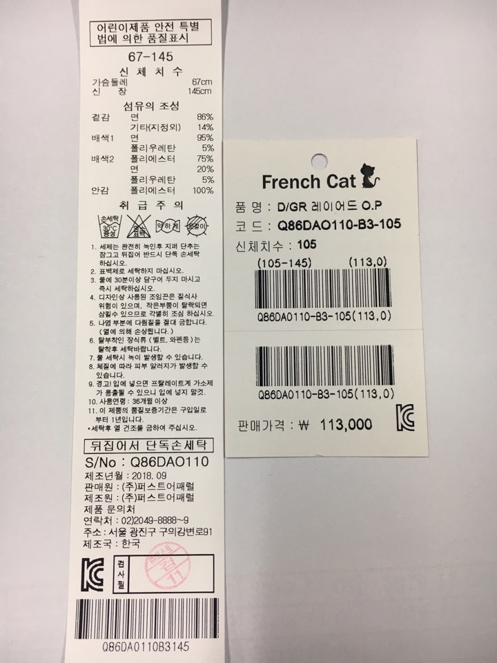 제조자 : 퍼스트어패럴