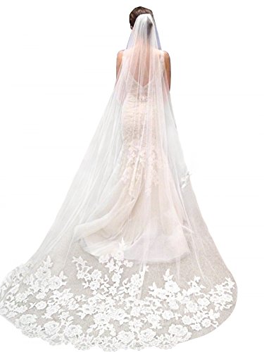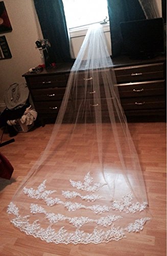 Misshow White Ivory Lace Edge Cathedral Length Wedding Bridal Veil with Comb