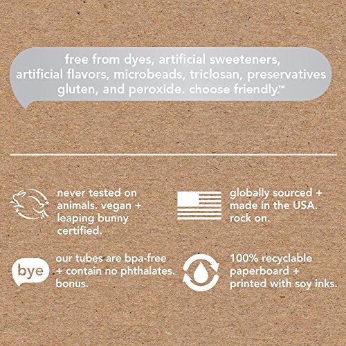 Say hello to naturally friendly extra whitening fluoride toothpaste in delicious pure mint flavor. It whitens teeth with no peroxide, no dyes or artificial sweeteners, no preservatives. No brainer!