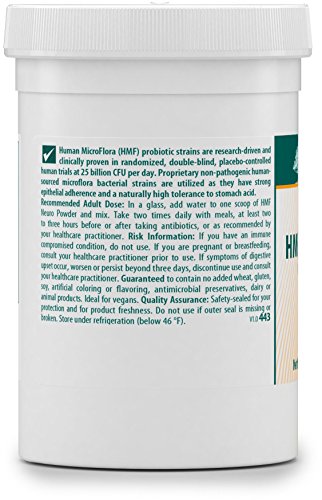 Human MicroFlora (HMF) probiotic strains are research-driven and clinically proven in randomized, double-blind, placebo-controlled human trials at 25 billion CFU per day. Proprietary non-pathogenic human-sourced microflora bacterial strains are utilized as they have strong epithelial adherence and a naturally high tolerance to stomach acid.Feature