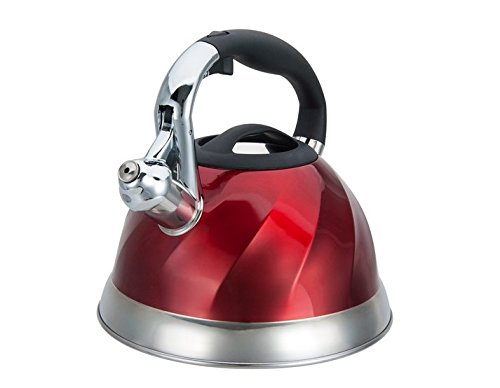 This tea kettle boils water quickly and whistles to let you know it's done. Crafted of 18/10 surgical stainless steel with a highly polished exterior. Extra-large easy-grab handle Dripless spout Capsule base ensures quick and even heating Features a large opening for easy filling and cleaning. Use on gas, ceramic and electric stove topsFeature