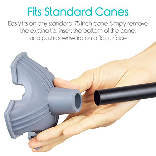 FITS STANDARD AND FOLDING CANES: Easily fits on any standard .75” cane. Simply remove the existing tip and insert the bottom of standard or folding cane into new rubber cane tip by pushing downward on a flat surface and twisting until fully inserted to prevent instability.