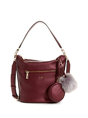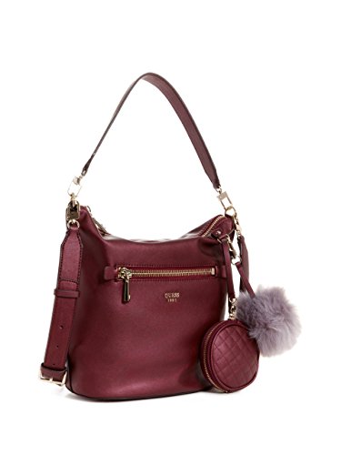 Smooth faux-leather hobo bag features gold-tone hardware, multipurpose pockets and logo-print lining. Front zipper pocket. Removable pom keychain and quilted coin purse. Top zipper closure.