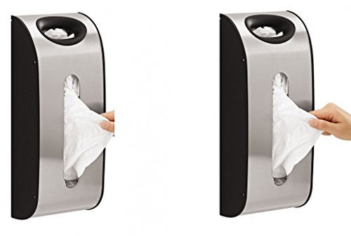 Mount this simplehuman grocery bag dispenser on a wall or inside a shelf for convenient, easy access. Stores 30 plastic grocery bags. Simply tuck them into the top opening, and pull them out from the wide dispensing area on the front of the holder. Durable stainless steel construction. Screws and double-sided tape included.