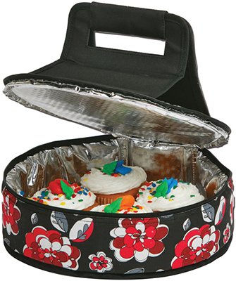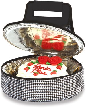 Fully thermal foil insulated carrier holds cakes, pies, tortes and cupcake