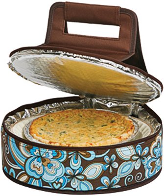 Works as a round casserole carrier, quiche, dips and tray carrier