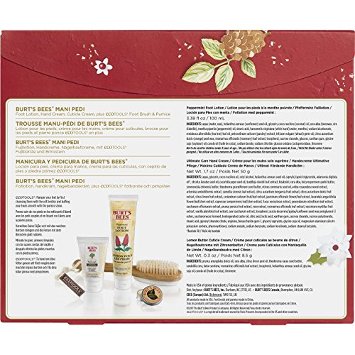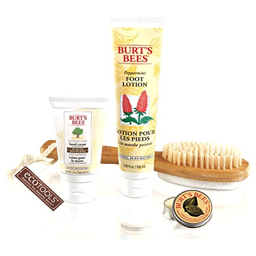-. Title : Burt's Bees Mani Pedi Gift Set, 4 Hand & Feet Products - Hand Cream, Cuticle Cream, Foot Lotion and EcoTools Foot Brush & Pumice