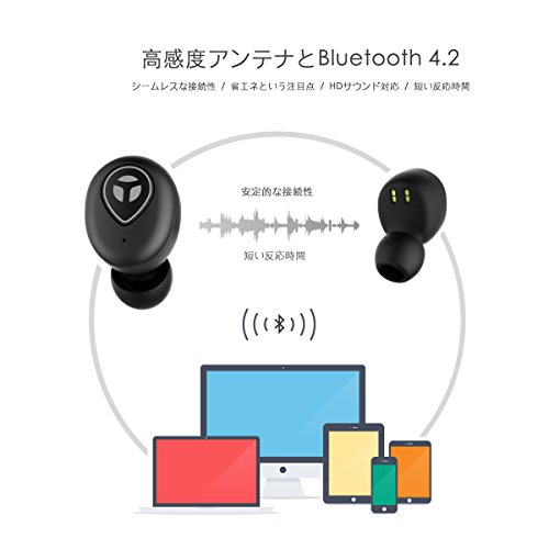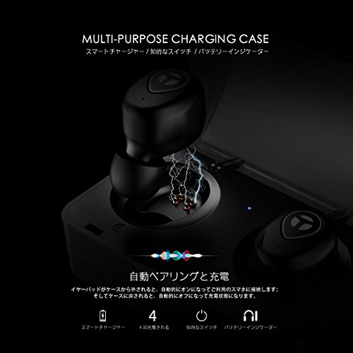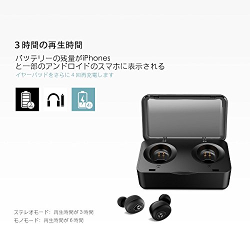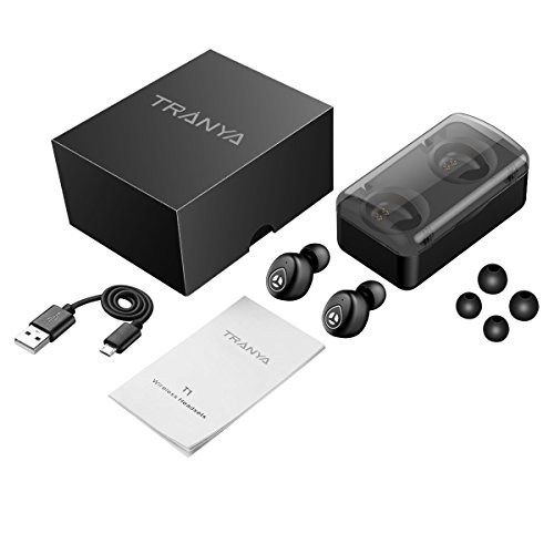 -. Feature : 【フィット性保証、そしてミニなデザイン】 極めて軽量で、2ペアのイヤチップがつくインナーイヤ式のミニデザインはヘッドホンを心地よくつけてもらうことを保証します。どれだけ強烈に頭を振っても、外れたりしません! / 【重低音付きのHDサウンド】特徴となるBluetooth 4.2とロスレスなHDを提供する技術は、深みある低音と澄んだ高音を兼ねる信じられないほど高音質を提供します。Tranyaの真のワイヤレスイヤーバッドは周りの騒音をたくさんブロックし、ランニング・サイクリング・ジョギングなどで発生する風の騒音も間違いなく避けます。 / 【バッテリーの寿命がもっと長い】 十分チャージすると、ヘッドセットが3時間まで再生できます。 また、ポータブル充電ドックはイヤホンを4回充電できます。トータル再生時間は15時間まで行きます。 / 【賢い充電ケース】イヤーバッドがケースから外されると、自動的にオンになってご利用のスマホに接続します;そしてケースに戻されると、自動的にオフになって充電状態になります。それで、電源ボタンを押し続けて、イヤーバッドをオン·オフしなくてもいいです。バッテリーインジケーターの特徴といえば、充電ケースがバッテリーの残量を示すことです。特にケースを充電するかどうか判断する場合、それが特に有用な機能です。 / 【高感度アンテナとBluetooth 4.2】Bluetooth 4.2と高感度アンテナ付のデバイスで、最大10メートルまでの距離を経て安定でシームレスな接続性を提供する同時に、データ伝送時の低レイテンシと低エネルギー消耗を保証します。それで、T1は安定で途切れなく音声信号転送を保証し、イヤーバッドが頻繁に切れたりするなど、「真のワイヤレスヘッドフォン」でよく見られる心配事をなくしてくれます。