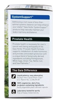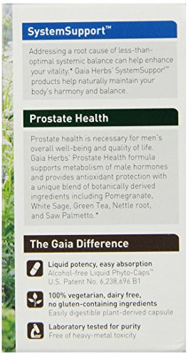Studio : Gaia Herbs Publisher : Gaia Herbs Binding : Health and Beauty Product Description SystemSupport Prostate Health supports healthy prostate function. When the prostate does not function optimally, everyday activities can be disrupted, negatively affecting a man's quality of life. Prostate Health optimizes metabolism of male hormones, promotes prostate health, and provides concentrated antioxidant protection, with botanically derived ingredients like Saw Palmetto Fatty Acid Sterols and Pomegrante Seed Oil. 0