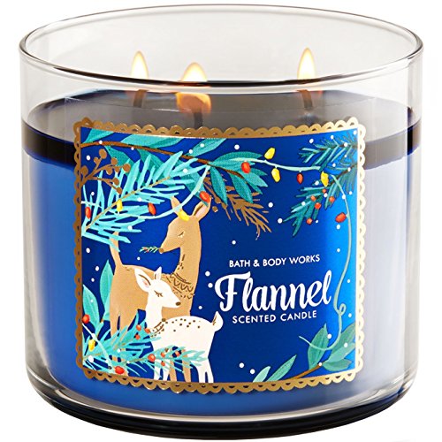 Bath and Body Works Flannel 14.5 Ounce 3 Wick Blue Candle Winter 2016
