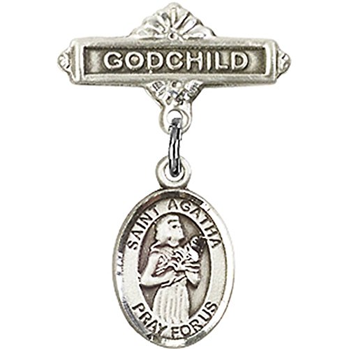 -. Title : Sterling Silver Baby Badge with St. Agatha Charm and Godchild Badge Pin 1 X 5/8 inches