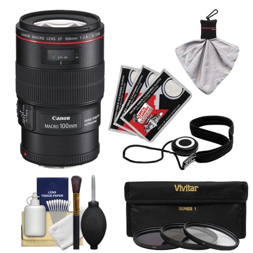 Canon EF 100mm f/2.8 L Macro IS USM Lens with 3 UV/CPL/ND8 Filters + Kit for EOS 6D, 70D, 7D, 5DS, 5D Mark II III, Rebel T3i, T5, T5i, T6i, T6s, SL1