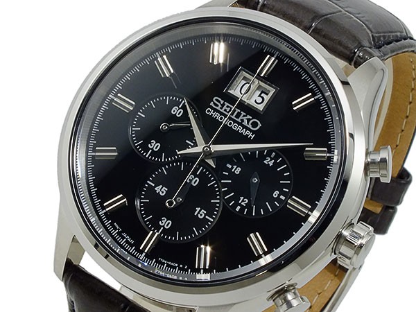 セイコー SEIKO クロノグラフ 腕時計 メンズウォッチ  商品仕様:(約)H41.9×W41.9×D13.1mm、重さ(約)78g、腕回り最大(約)20cm 、腕回り最小(約)14cm、ベルト幅ラグ付近(約)19.7mm、ベルト幅バックル付近(約)18mm ステンレス(ケース)、レザー(ベルト) ケース、取扱説明書、保証書
