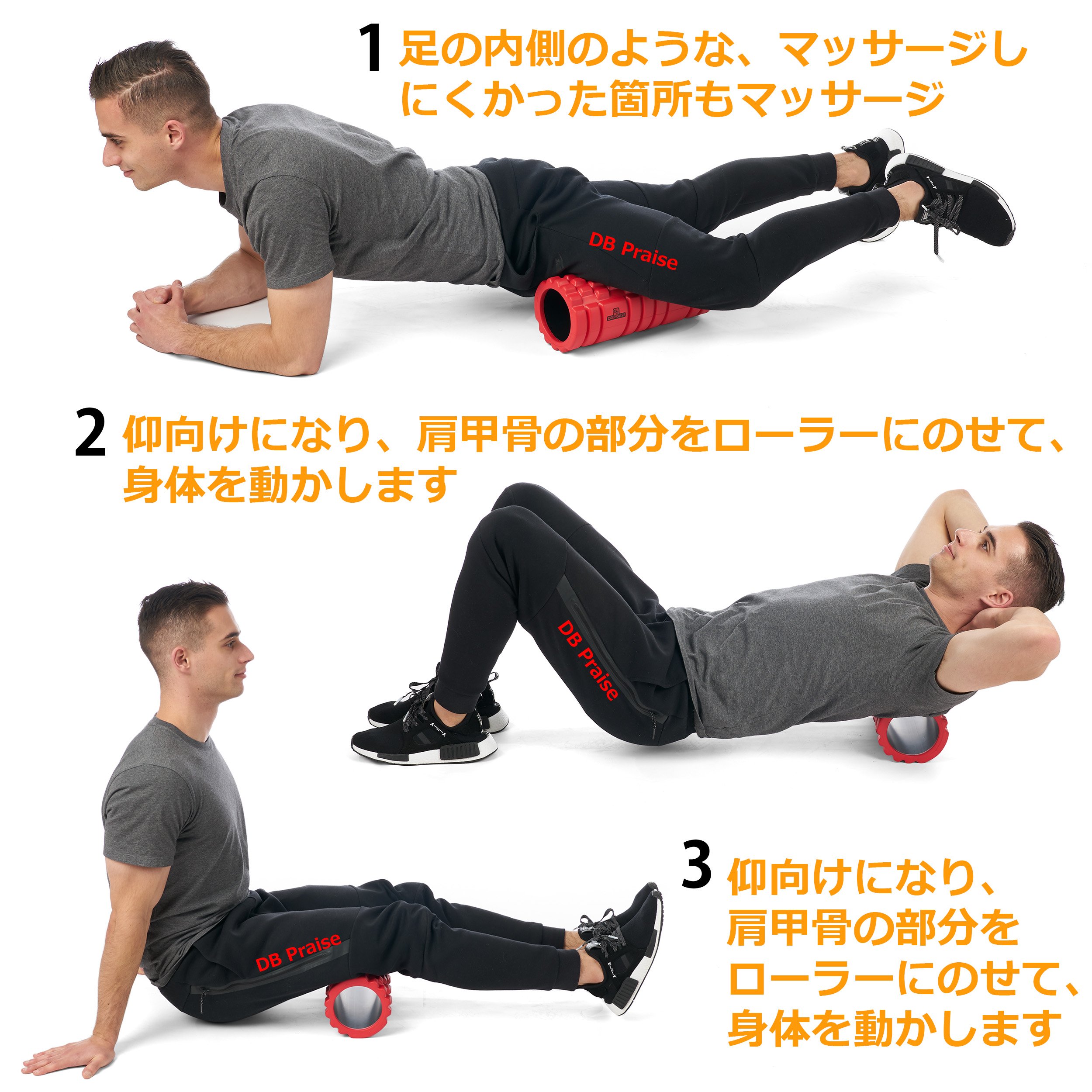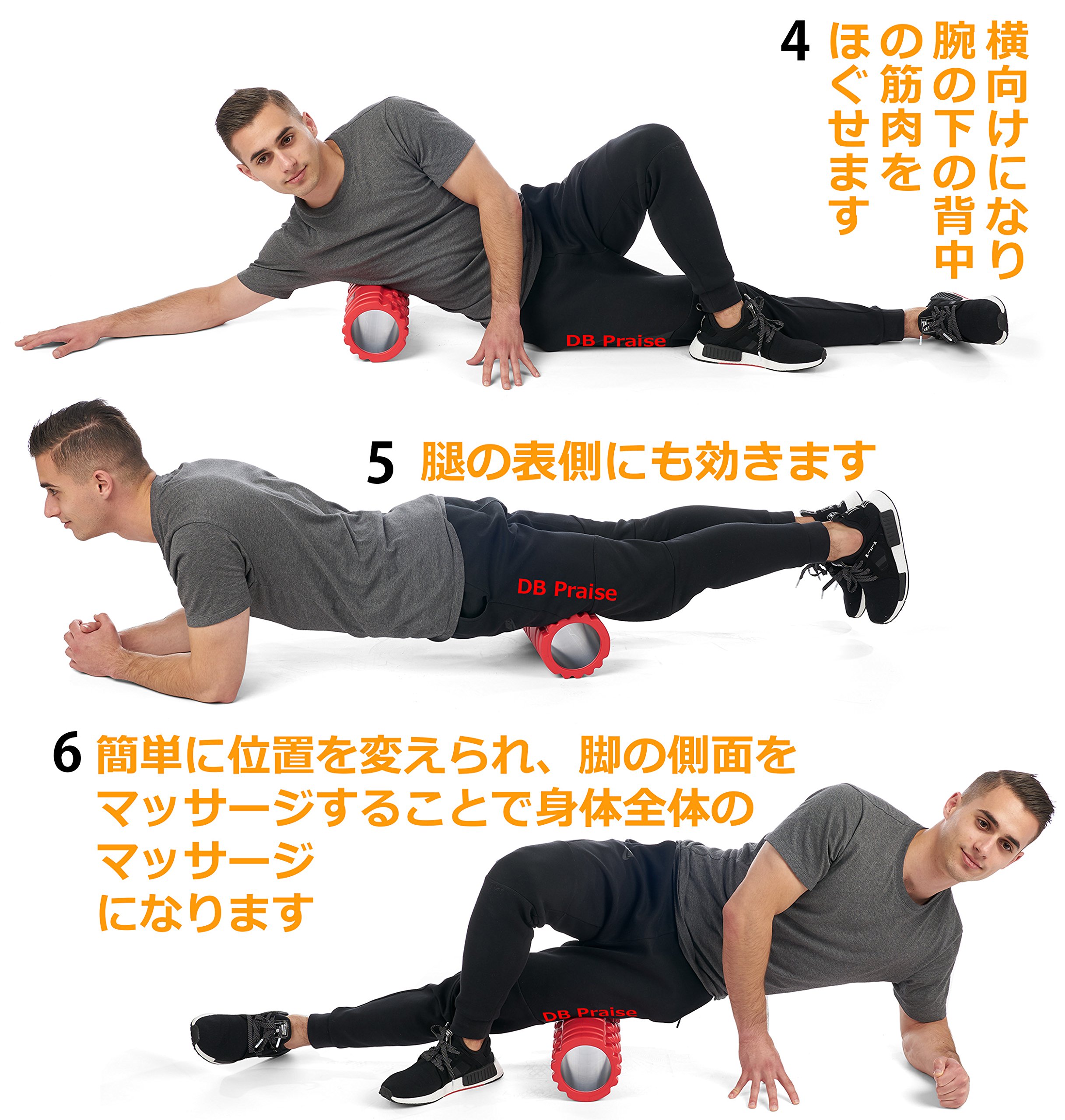 On the surface of our DB Praise foam roller X, there are two kinds of massage surfaces, a fingertip massage part and a palm massage part.