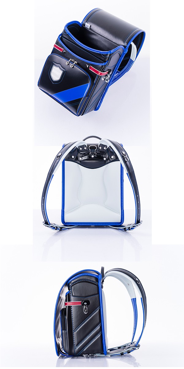 反射機能:かぶせ/あり、前締め/あり、持ち手:あり 、ポケット:ワイドポケット/Dカン付、補強:ガッチリガード、錠前:ワンタッチロック、カラー:ブラック×ロイヤルブルー×レッド コンビ