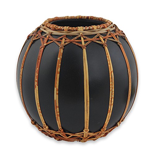 NOVICA 'Asian Weave' Wood Vase