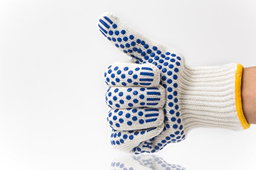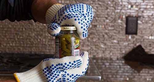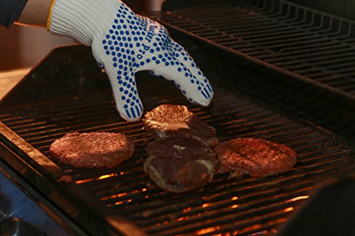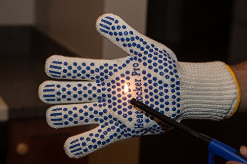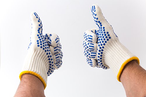 - Feature : *** LIFETIME GUARANTEE *** We Stand Behind Our Oven Gloves And You Can Buy With Confidence. Our Heat Resistant Gloves Are EN 407 and ISO Certified And Can Be Used As Your BBQ Gloves, Grill Gloves, Oven Mitts and Pot Holders. / PREMIUM QUALITY MATERIALS: The Outside Of These Heat Resistant Gloves is Made of Extremely Heat Resistant Aramid Fibers - Nomex. Better Heat Protection Than Kevlar. The Same Material Used in Fire Fighters' Vests. 100% Premium Quality Cotton Interior. No Polyester mix. Great As Oven Mitts And As Your Barbecue Gloves. / BONUS- Special 48 Page Mouth Watering Recipes e-book Bonus - Valued at $19.97 FREE For You(e-book download details inside the package). / AMBIDEXTROUS: Set of 2 & Fits Both Men and Women Snugly. No More Loose Threads. MACHINE WASHABLE. You Will Immediately Feel The Difference And Know These Offer More Flexibility Than Regular Oven Mitts And Potholders. Use All Five Digits While Using Gas Grills, Barbecue Grills, Ovens, Slick Crackpots, Changing Light Bulbs And Much More. / SUPERB GRIP: Cover About 3.6 inches Above Your Wrists Protecting Part Of Your Forearms. Oven Gloves Are Thick But Light And Studded With SILICONE DOTS On Both Sides For Added Heat Protection And Better Grip When Handling Hot Pans, Pots, Skillets And Fire place logs.