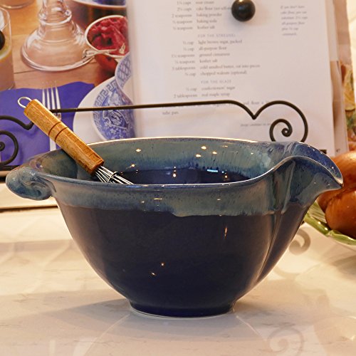 Mixing Bowl; Large Blue Ceramic Easy Grip Serving Bowl By Tumbleweed